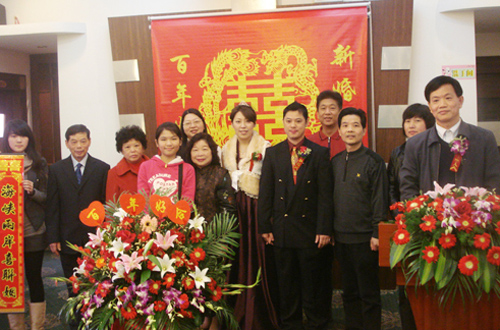 臺(tái)灣美女嫁給了云和小伙,締造了兩岸聯(lián)姻佳話,也是海峽兩岸形勢(shì)順勢(shì)發(fā)展的良好見證;槎Y上,親朋好友都為多了一位臺(tái)灣媳婦而感到異常高興,并為兩位新人送上了深深的祝福,禮儀小姐還特意送上了一幅對(duì)聯(lián):“炎黃兒女本同根,海峽兩岸喜聯(lián)姻”。