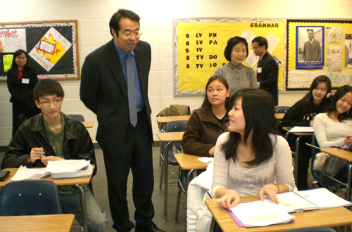 中新網(wǎng)3月2日電 2月28日上午,國務(wù)院僑辦副主任許又聲參觀了新澤西華夏中文學(xué)校的博根分校,并與該校教師進行座談。
