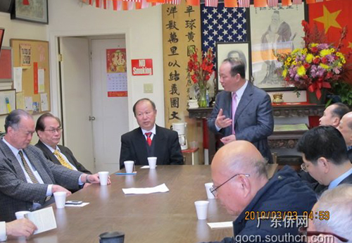 首先,吳銳成向社團領(lǐng)導介紹了廣東省經(jīng)濟發(fā)展情況。他指出中國率先走出國際金融風暴的影響,2009年國民生產(chǎn)總值增長8.5%,經(jīng)濟總量超越德國成為世界第三大經(jīng)濟體。廣東作為全國第一經(jīng)濟大省,國民生產(chǎn)總值增長9.5%。今日廣東,經(jīng)濟繁榮,社會穩(wěn)定,人民安居樂業(yè)。他誠懇地表示,廣東的發(fā)展離不開海外華僑華人的支持,改革開放以來旅。居舊金山的鄉(xiāng)親回家鄉(xiāng)投資,推動廣東產(chǎn)品出口,積極參與家鄉(xiāng)經(jīng)濟建設(shè),為家鄉(xiāng)的經(jīng)濟發(fā)展和社會進步做出了貢獻。他希望大家多回家鄉(xiāng)看看,多了解家鄉(xiāng)的新變化,了解廣東經(jīng)濟發(fā)展的新機遇,尋找商機,發(fā)展事業(yè)。最后,吳銳成代表廣東省僑辦向僑胞們送上節(jié)日祝福,祝大家身體健康,家庭幸福。