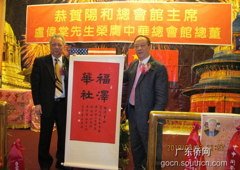 在就職儀式上,吳銳成代表廣東省僑辦對盧偉棠先生接任中華總會館總董表示熱烈的祝賀。吳銳成贊揚盧偉棠先生從事僑社服務(wù)工作三十多年來,為社團的發(fā)展和團結(jié),為爭取華社的權(quán)益和福祉等方面作出的貢獻,并向盧偉棠先生贈送了大幅題詞“福澤華社”。