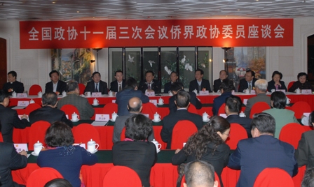 中新網(wǎng)3月8日電 據(jù)中國僑聯(lián)網(wǎng)站消息,3月6日,中國僑聯(lián)在首都大酒店召開全國政協(xié)十一屆三次會議僑界政協(xié)委員座談會,中國僑聯(lián)主席林軍主持座談會,副主席董中原、王永樂、喬衛(wèi)、李昭玲、雪克萊提•扎克爾等以及顧問林兆樞、林明江出席。與會人員歡聚一堂,暢言兩會熱點,共議僑聯(lián)工作。