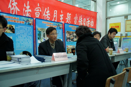 中新網(wǎng)3月10日電 據(jù)上海市僑辦消息,根據(jù)上海市僑辦精神,上海市閘北區(qū)僑辦會同寶山社區(qū)(街道)黨工委、辦事處,于3月5日上午在寶山社區(qū)文化活動中心,以“僑界和諧、共迎世博”為主題,以《中華人民共和國歸僑僑眷權(quán)益保護法》等僑務(wù)法律法規(guī)為主要內(nèi)容,開展了“2010年閘北區(qū)僑法宣傳月主題宣傳日”活動。