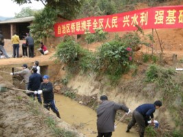 這次冬修水利勞動(dòng),是廣西壯族自治區(qū)僑聯(lián)積極響應(yīng)廣西壯族自治區(qū)黨委、自治區(qū)人民政府號(hào)召的一次主題實(shí)踐活動(dòng)。當(dāng)日,一到勞動(dòng)現(xiàn)場,廣西僑聯(lián)主席韋干身先士卒,帶頭跳入2米深的水渠里,帶領(lǐng)大家迅速投入到勞動(dòng)中去。工地上,廣西僑聯(lián)會(huì)旗和“自治區(qū)僑聯(lián)攜手全區(qū)人民興水利,強(qiáng)基礎(chǔ),惠民生”橫幅迎風(fēng)飄揚(yáng),大家情緒高漲,干勁十足,有的鏟淤泥、搬石塊,有的鋤雜草、修整渠面……,有人身上濺滿了泥漿也全然不顧。