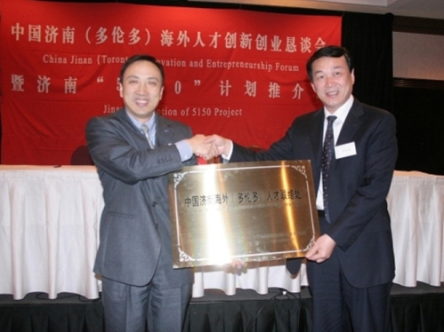 經(jīng)濟南僑辦多次聯(lián)絡協(xié)調(diào),在前期交流考察基礎上,濟南市政府分別與在當?shù)赜杏绊、有實力、在僑界聯(lián)絡廣泛的美國華源科技協(xié)會、中國旅美科技協(xié)會、加拿大專業(yè)人士協(xié)會三家華僑華人科技社團,簽約設立濟南(硅谷)、濟南(紐約)、濟南(多倫多)三處人才引進聯(lián)絡處,殷魯謙為聯(lián)絡處授牌,為美加海外高層次人才到濟南創(chuàng)新創(chuàng)業(yè)搭建新的交流合作平臺。