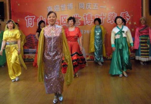 中新網(wǎng)5月4日電 據(jù)蘇州市僑辦消息,4月26日,江蘇省蘇州市何山社區(qū)僑胞藝術(shù)團(tuán)為居民們獻(xiàn)上了一場別開生面的“喜迎世博 同慶五一”世博時裝秀活動。