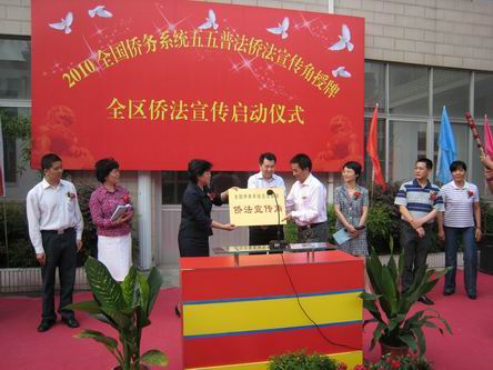 活動儀式上,江蘇省僑辦副主任季俊秋和常州市僑辦主任蔡楚秋共同為奔牛鎮(zhèn)“僑法宣傳角”授牌,并向鎮(zhèn)領導贈送了電腦和打印機。