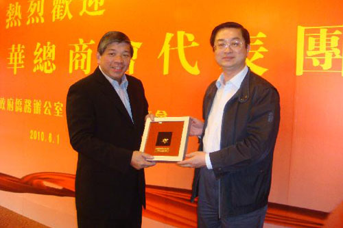 中新網(wǎng)6月4日電 據(jù)上海市僑辦網(wǎng)站消息,以會長張松聲為團(tuán)長的新加坡中華總商會商業(yè)代表團(tuán)一行日前訪滬,并參觀了上海世博會。6月1日晚,上海市政府僑辦和上海市僑商會舉辦歡迎會接待代表團(tuán)一行。上海市政府僑辦主任崔明華,上海市僑商會常務(wù)副會長屠海鳴、姚征,上海市僑商會常務(wù)理事談惠法等參加了歡迎活動。